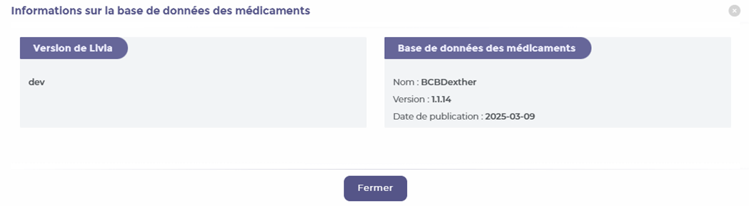 Le clic sur ce nouvel indicateur permet d’afficher la version de la base médicamenteuse.